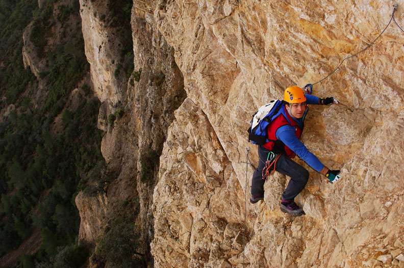 En la vía ferrata del Ponoig (Alicante)